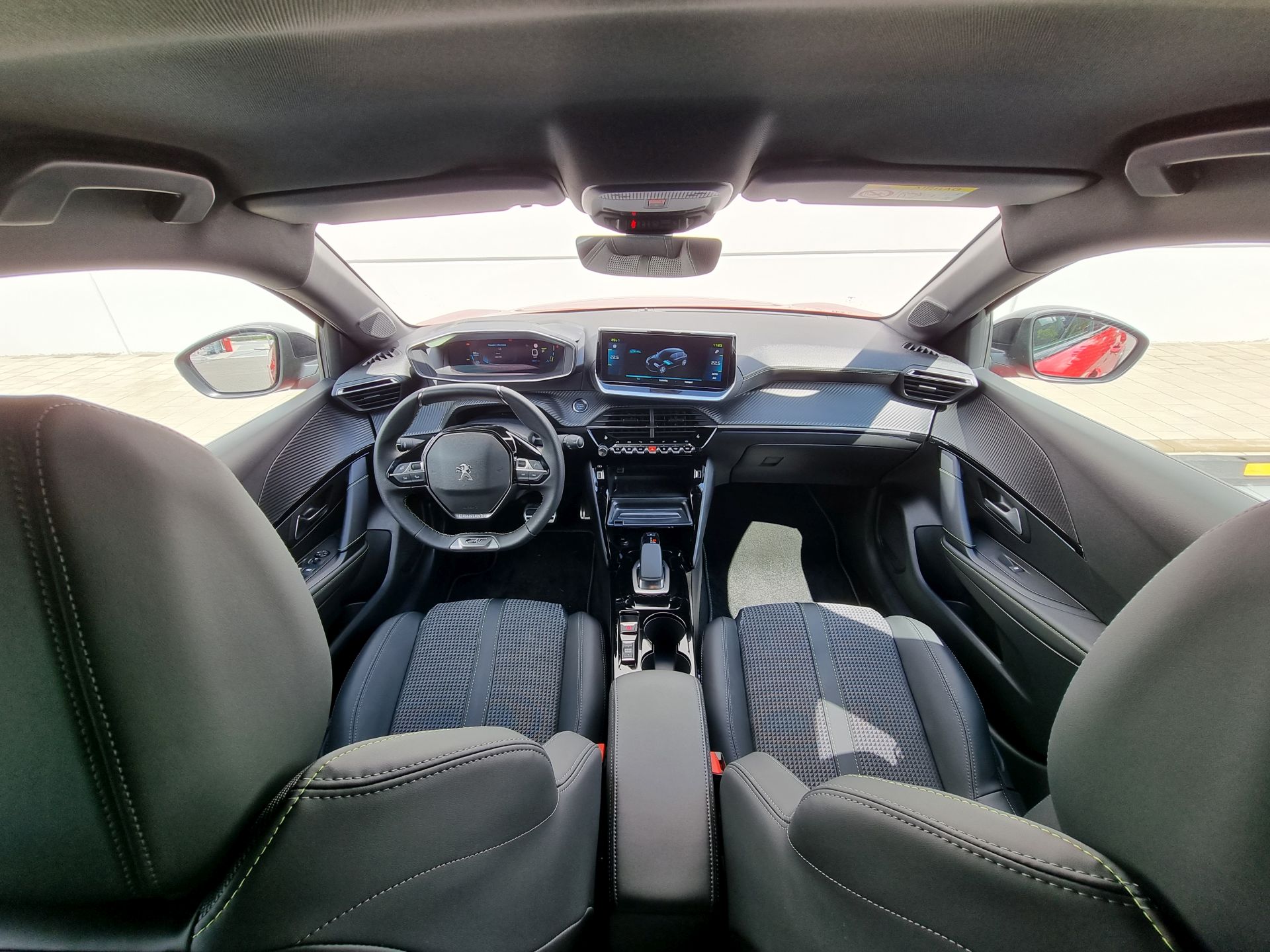 v autě jede jen řidič a nebo jeho dalších několik statných kamarádů. Ano, i 5 dospělých chlapů se do 208ky vešlo, vzadu sice těsně, ale vešlo. Motor o tom vůbec nevěděl, jede si stejně čile i v plném obsazení. Aby taky ne, ten samý motor pohání i velký Peugeot e-Traveler a to je 7 místná dodávka s aerodynamikou „natažené plachty“.